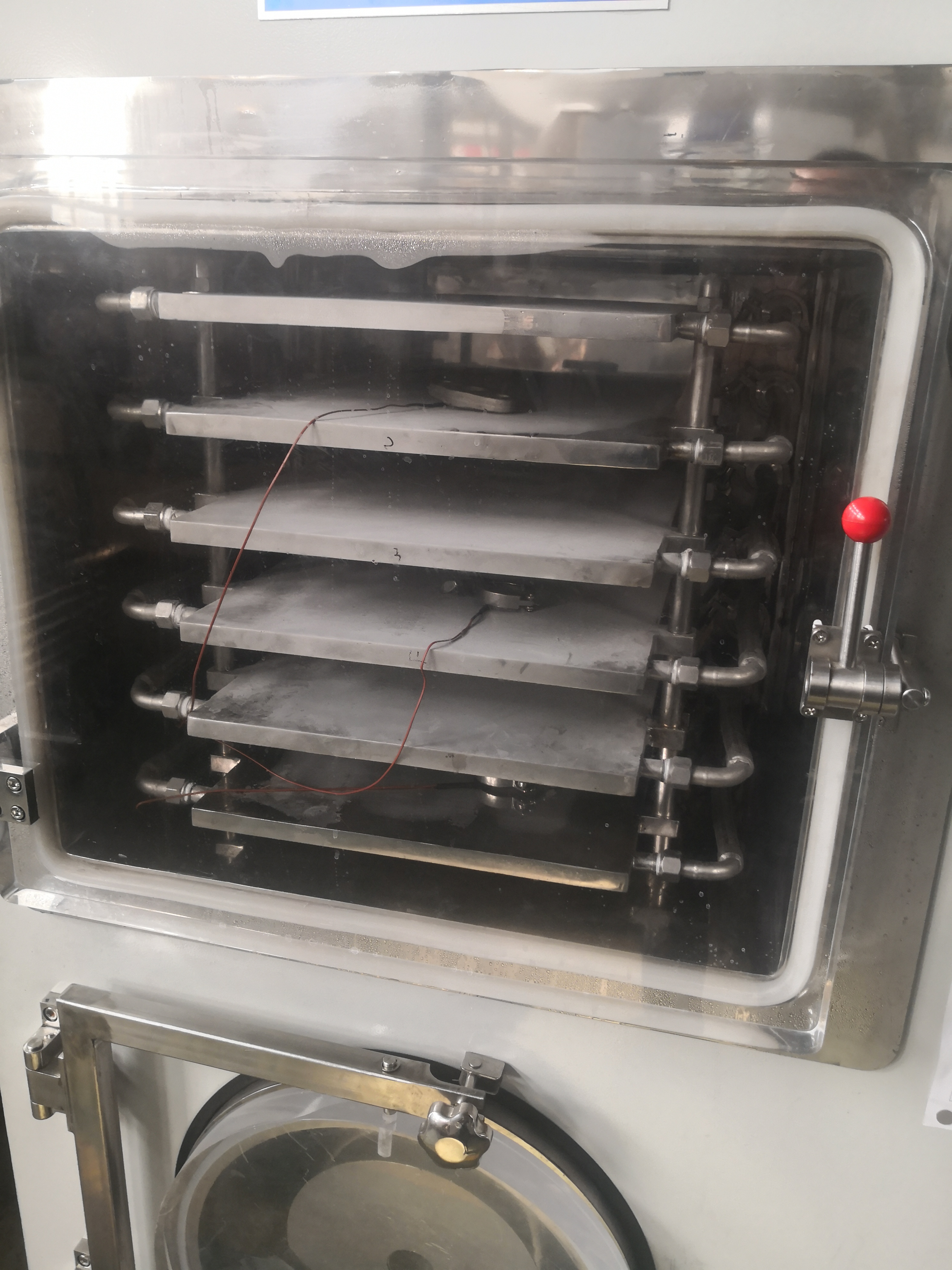 使用说明:设备通水通电通气→原料准备好装盘→放入冻干机→预冻及升华干燥(冻干机中可直接预冻)→出仓包装